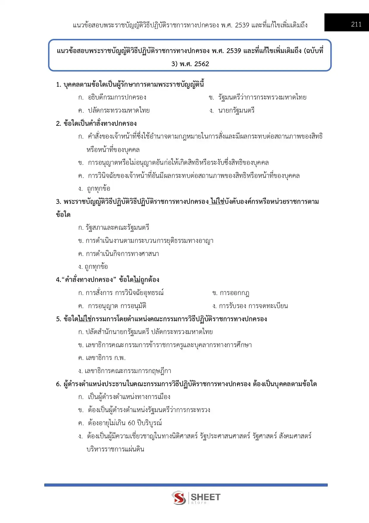 – แนวข้อสอบสรุปสาระสำคัญพระราชกฤษฎีกาว่าด้วยหลักเกณฑ์และวิธีการบริหารกิจการบ้านเมืองที่ดี พ.ศ. 2546 และที่แก้ไขเพิ่มเติมถึง (ฉบับที่ 2) พ.ศ. 2562