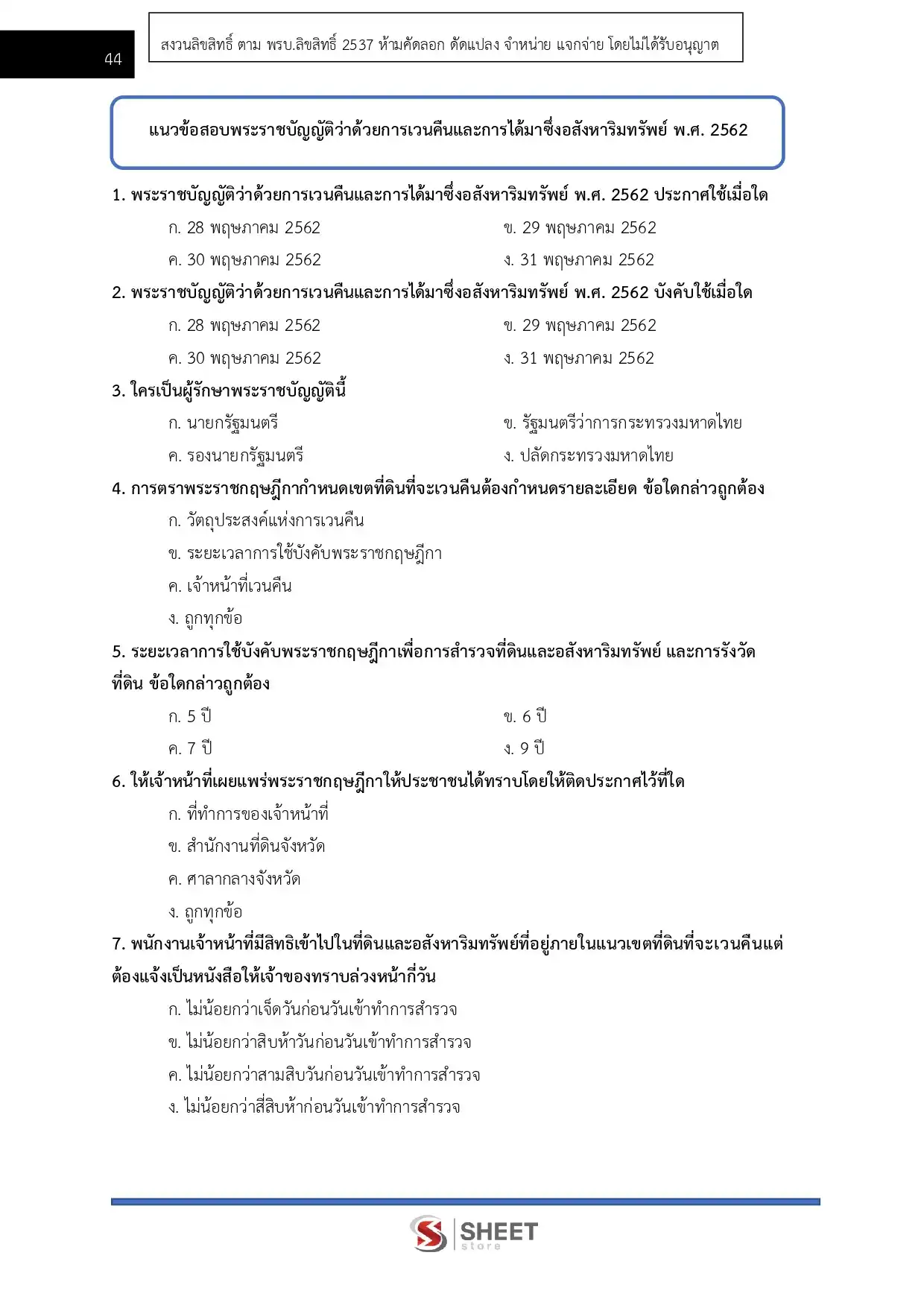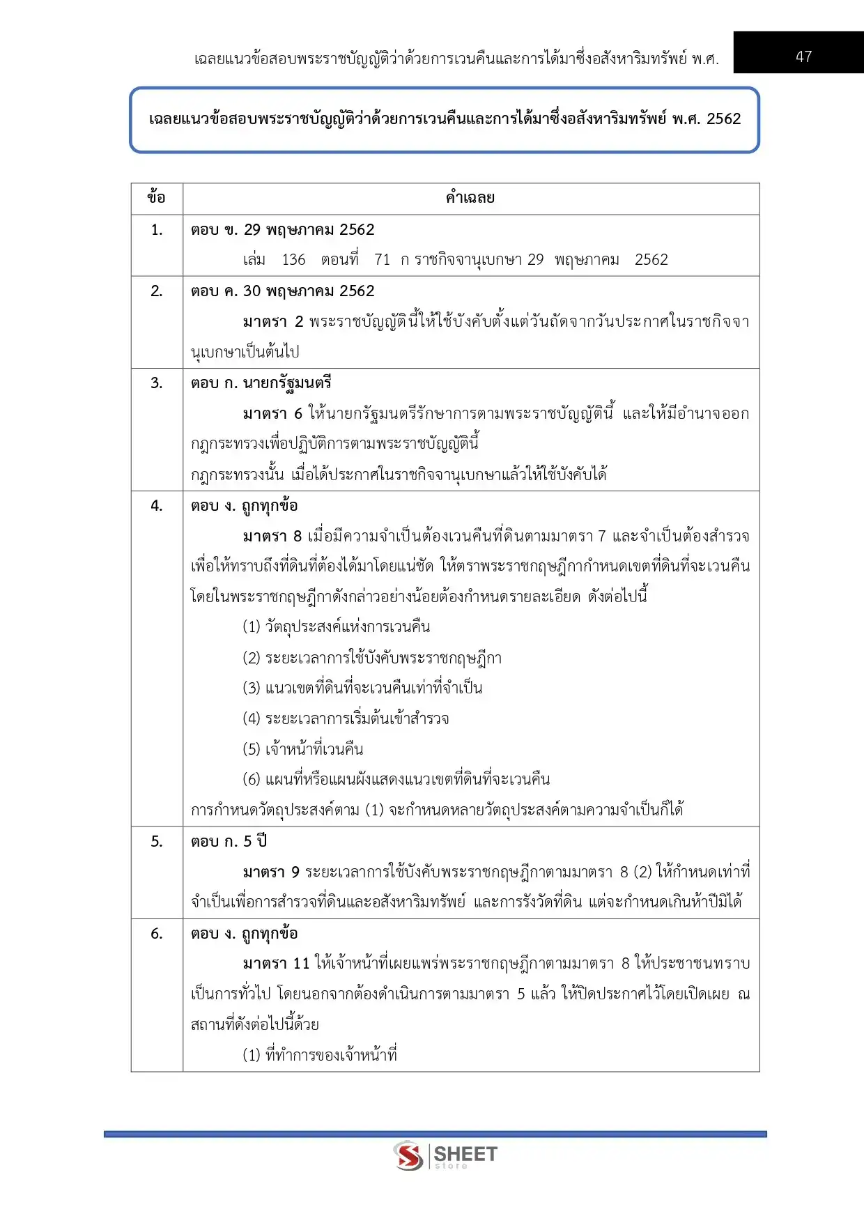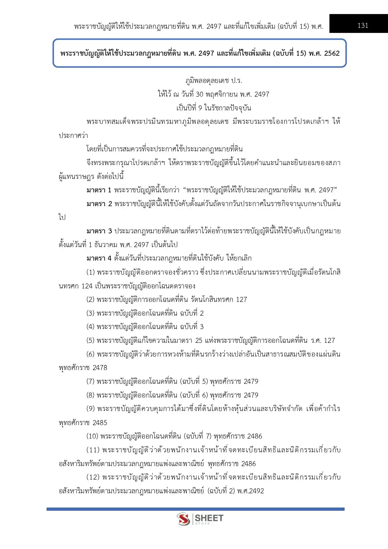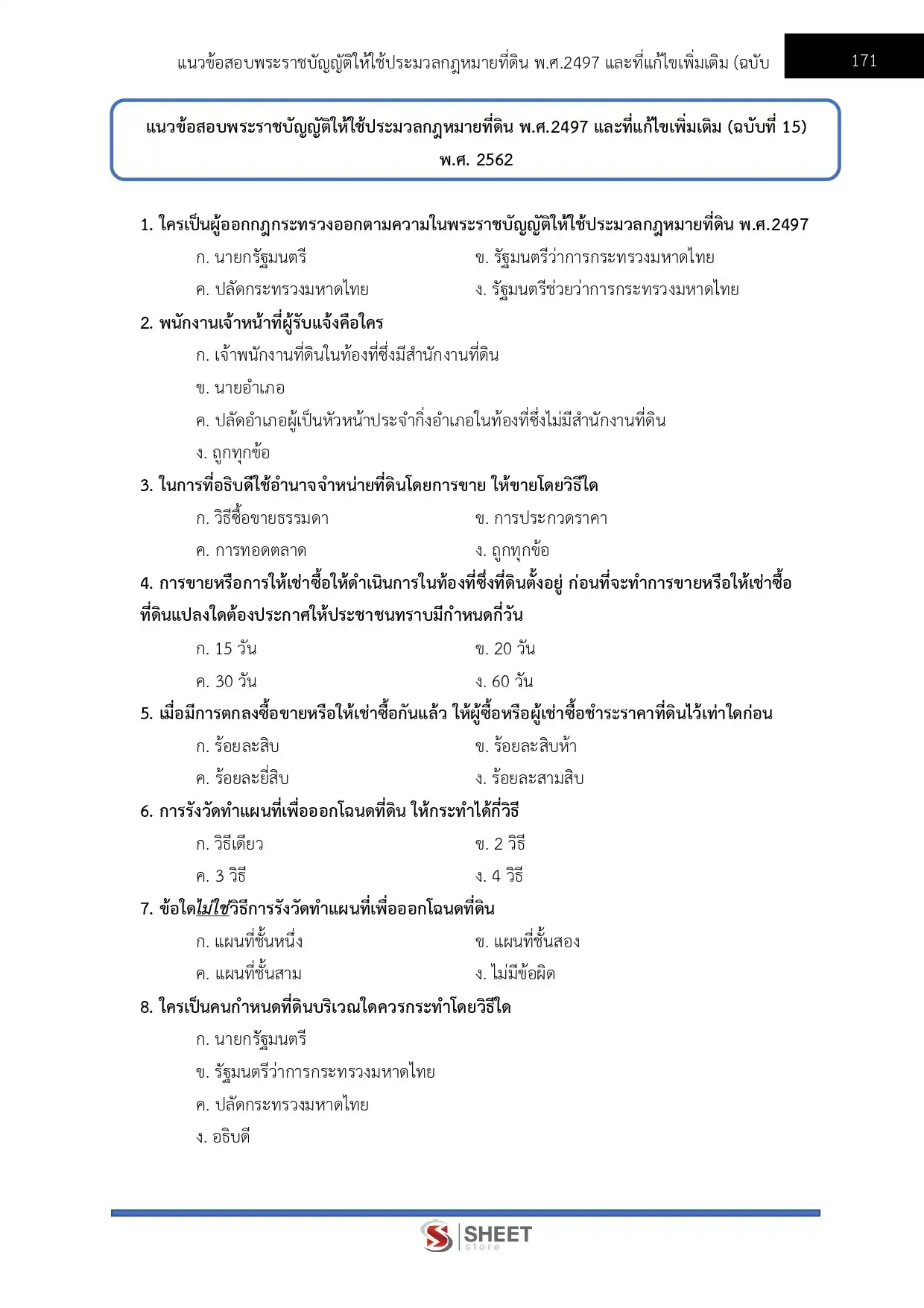 – แนวข้อสอบพระราชบัญญัติให้ใช้ประมวลกฎหมายที่ดิน พ.ศ. 2497และที่แก้ไขเพิ่มเติม(ฉบับที่15)พ.ศ. 2562