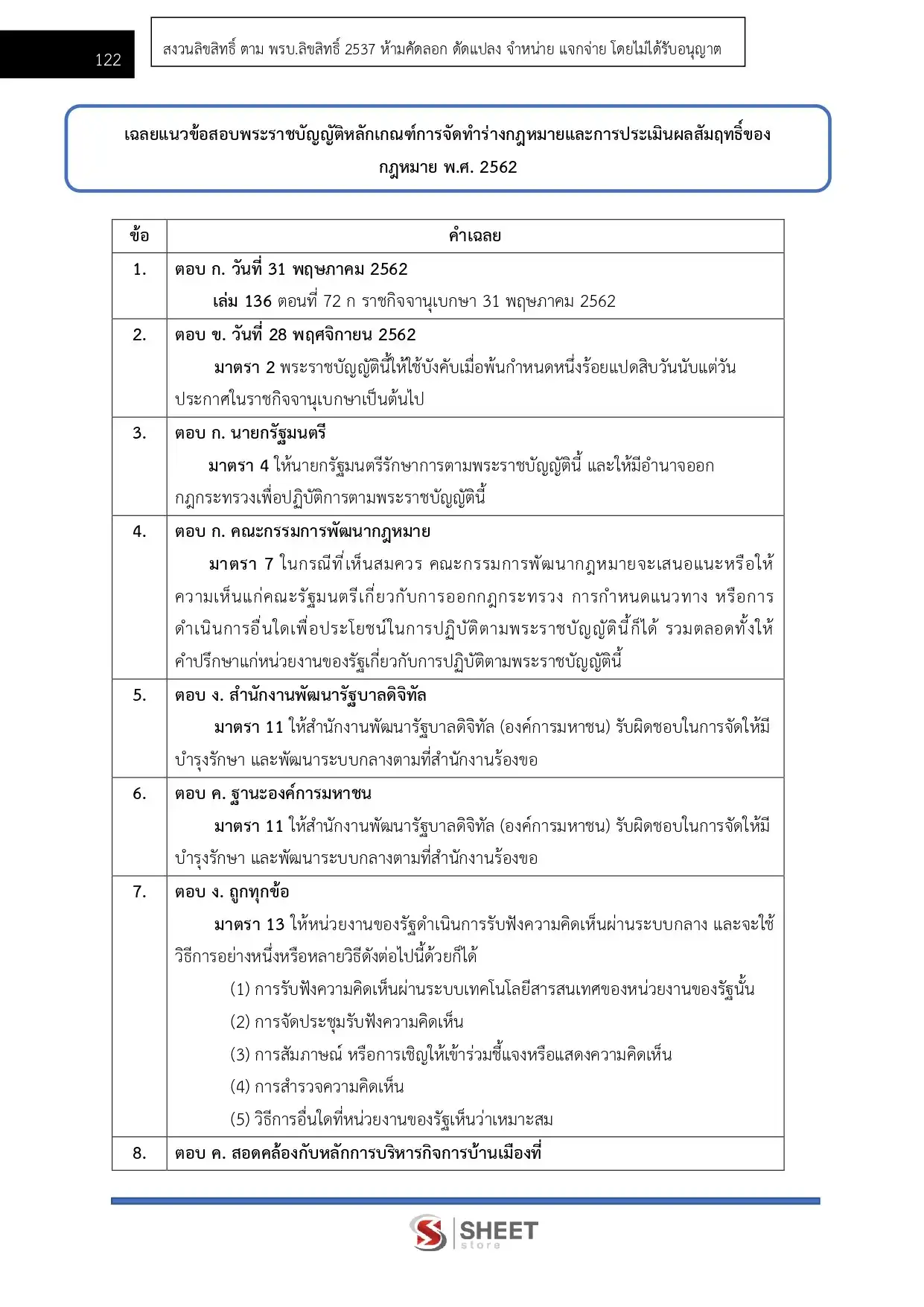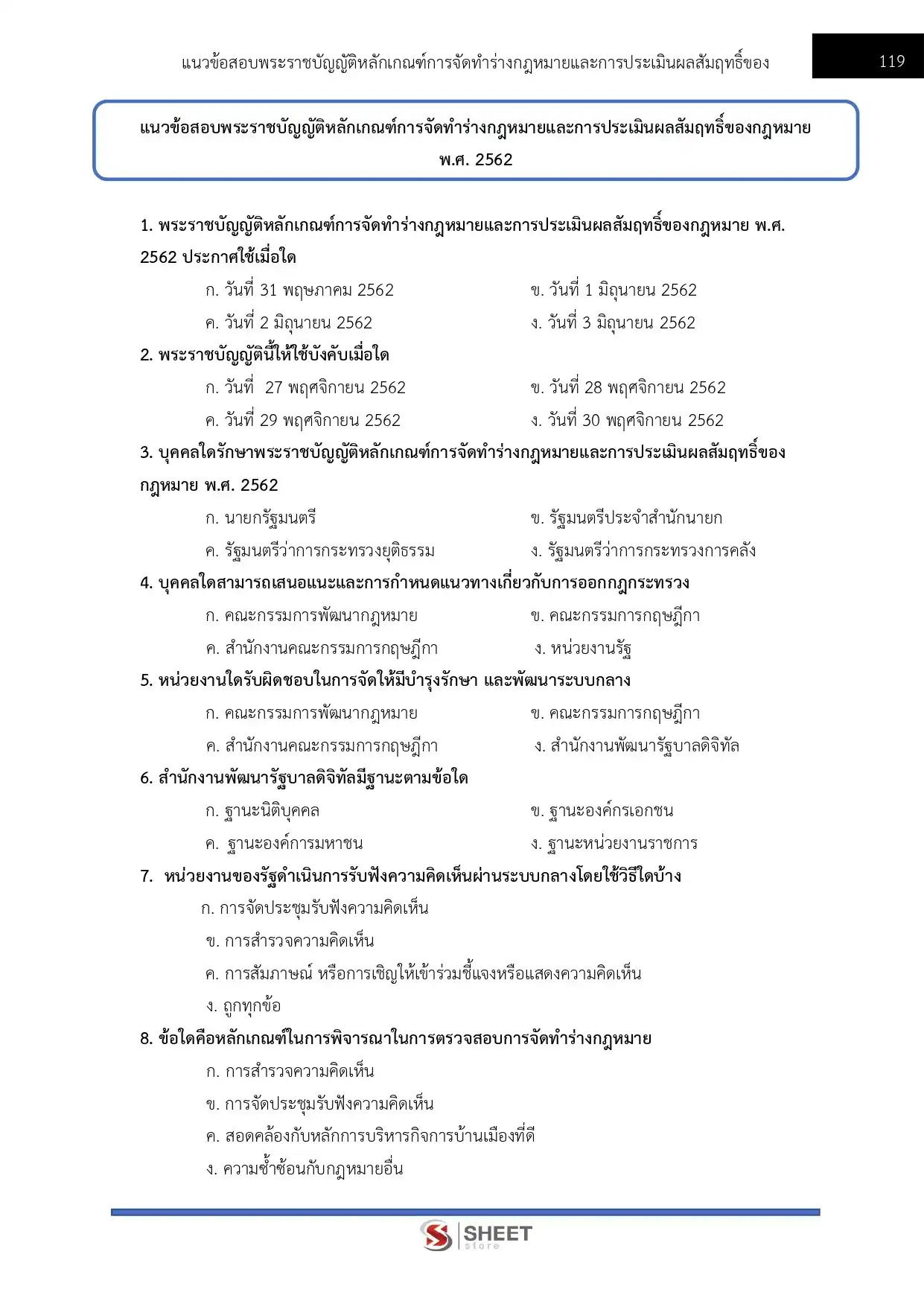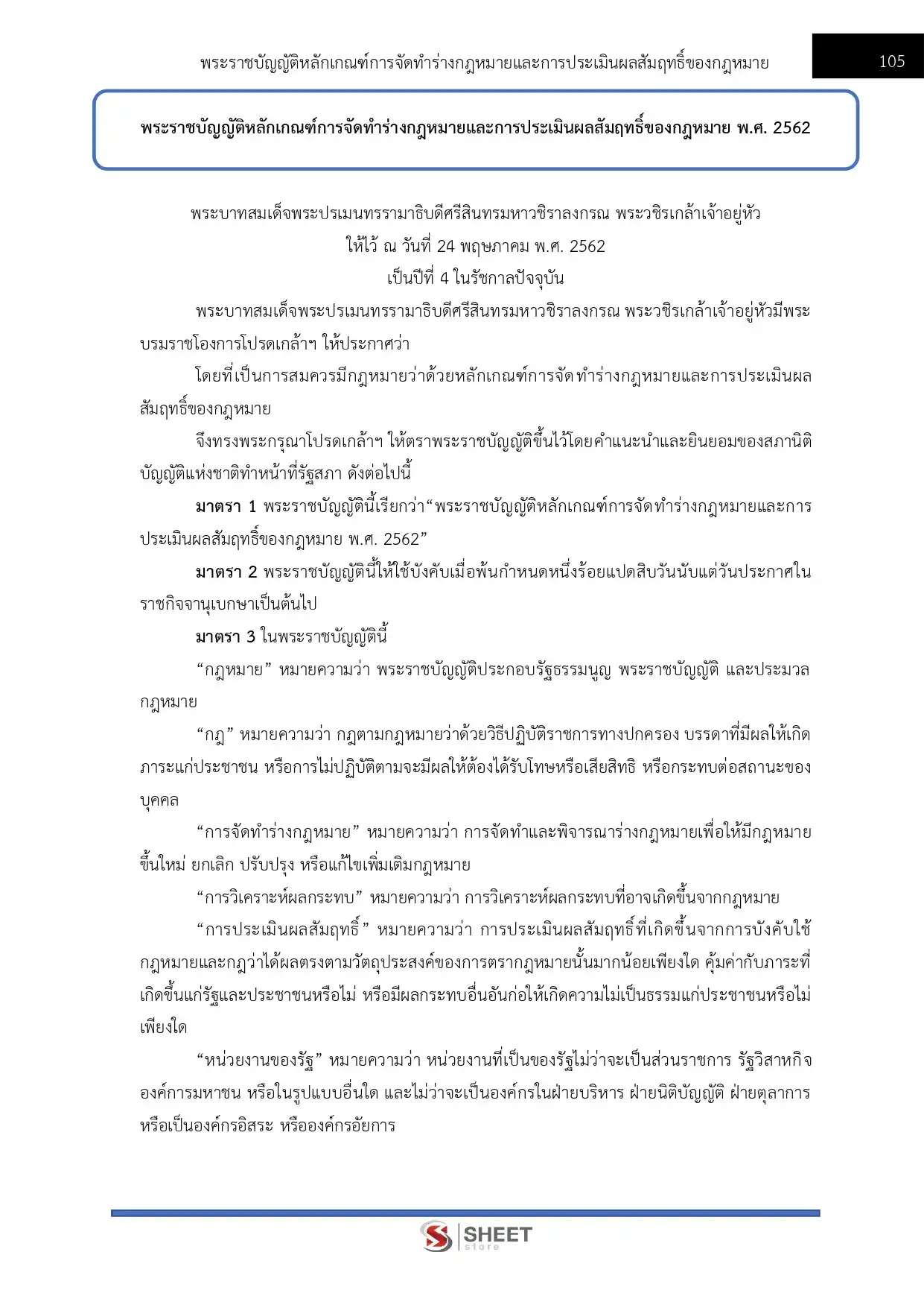 – แนวข้อสอบพระราชบัญญัติหลักเกณฑ์การจัดทำร่างกฎหมายและการประเมินผลสัมฤทธิ์ของกฎหมาย พ.ศ. 2562