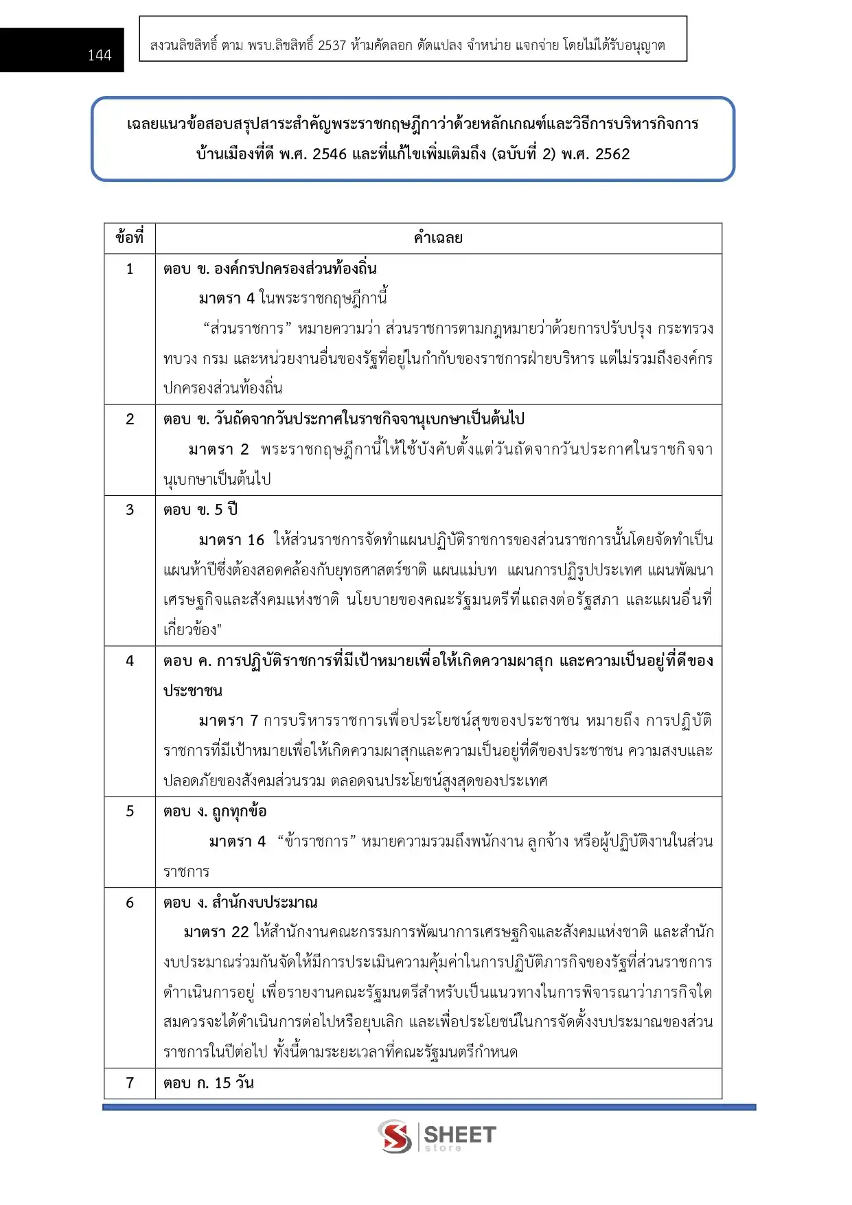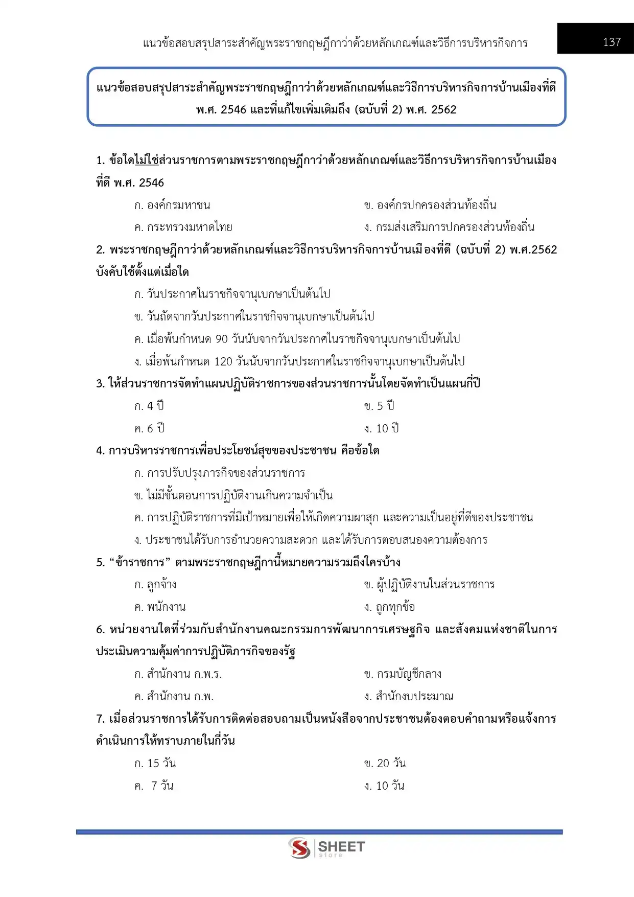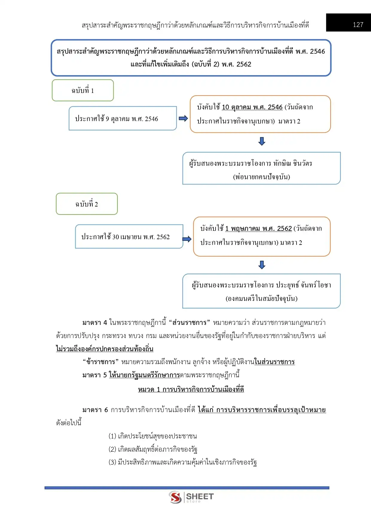 – แนวข้อสอบสรุปสาระสำคัญพระราชกฤษฎีกาว่าด้วยหลักเกณฑ์และวิธีการบริหารกิจการบ้านเมืองที่ดี พ.ศ. 2546 และที่แก้ไขเพิ่มเติมถึง (ฉบับที่ 2) พ.ศ. 2562