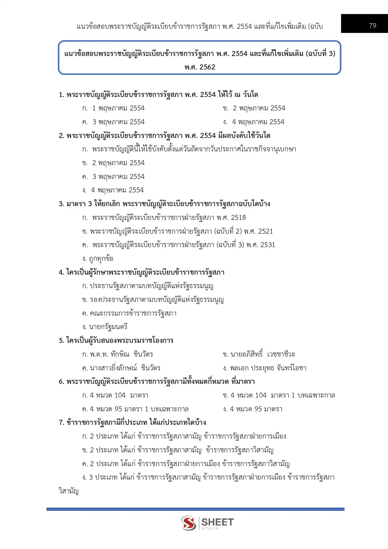 – แนวข้อสอบพระราชบัญญัติระเบียบข้าราชการรัฐสภา พ.ศ. 2554 และที่แก้ไขเพิ่มเติม (ฉบับที่ 3) พ.ศ. 2562