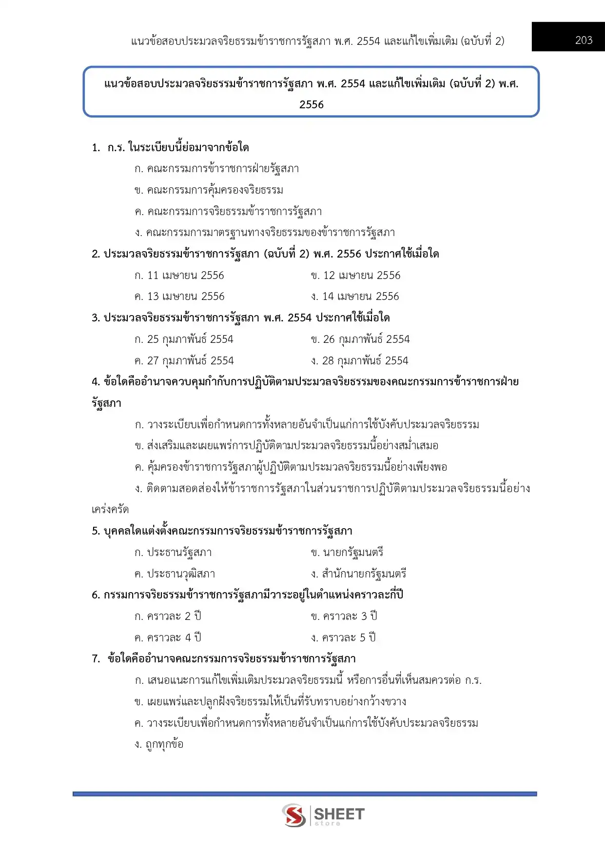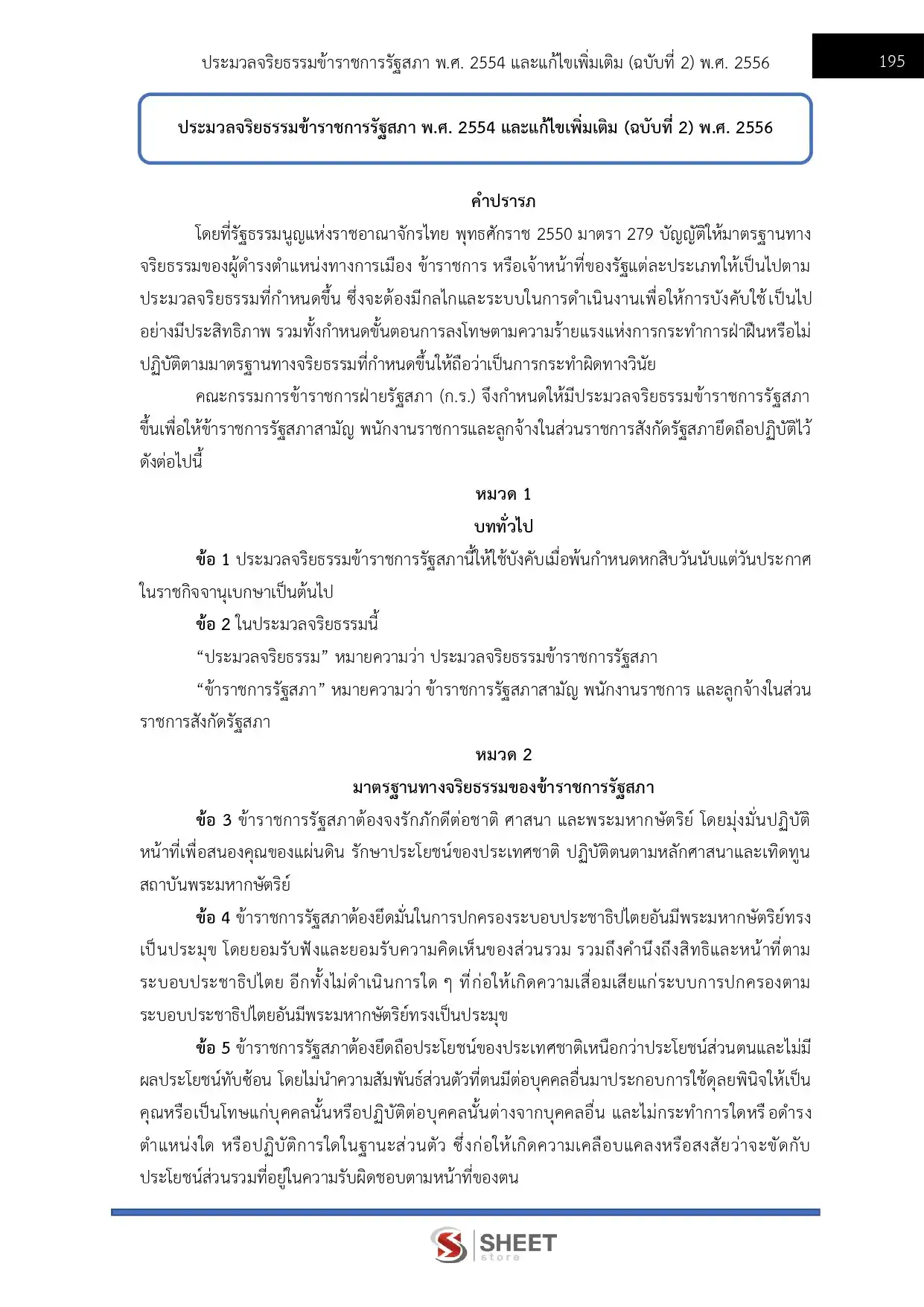 – แนวข้อสอบประมวลจริยธรรมข้าราชการรัฐสภา พ.ศ. 2554 และที่แก้ไขเพิ่มเติม (ฉบับที่ 2) พ.ศ. 2556