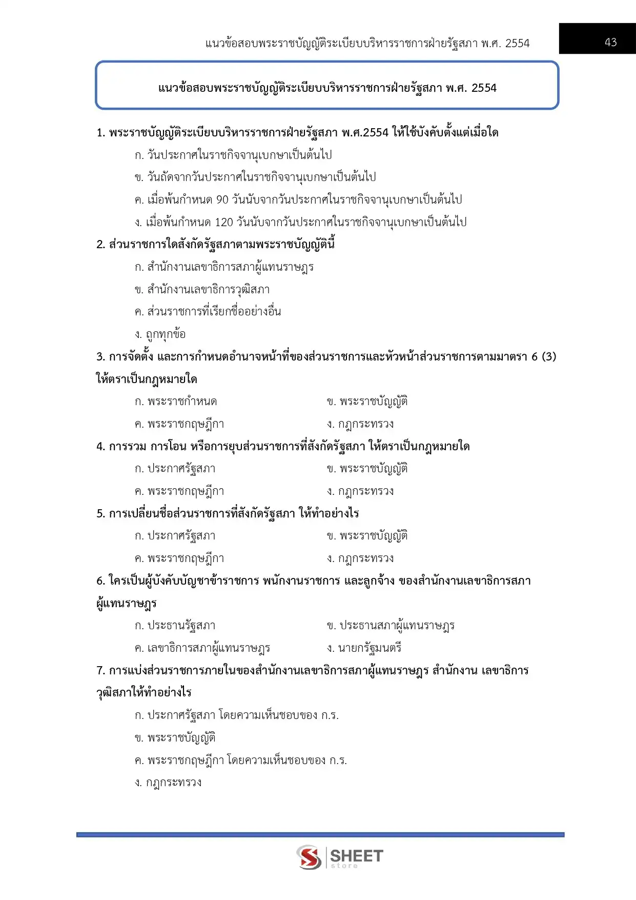 – แนวข้อสอบพระราชบัญญัติระเบียบบริหารราชการฝ่ายรัฐสภา พ.ศ. 2554