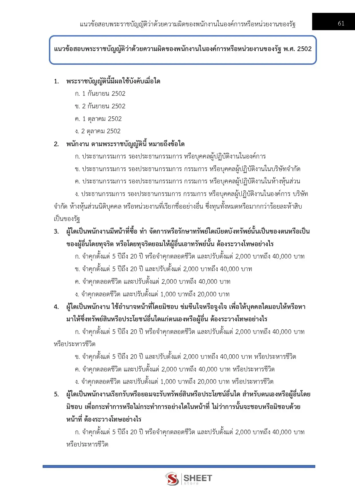 – แนวข้อสอบพระราชบัญญัติว่าด้วยความผิดของพนักงานในองค์การหรือหน่วยงานของรัฐ พ.ศ. 2502