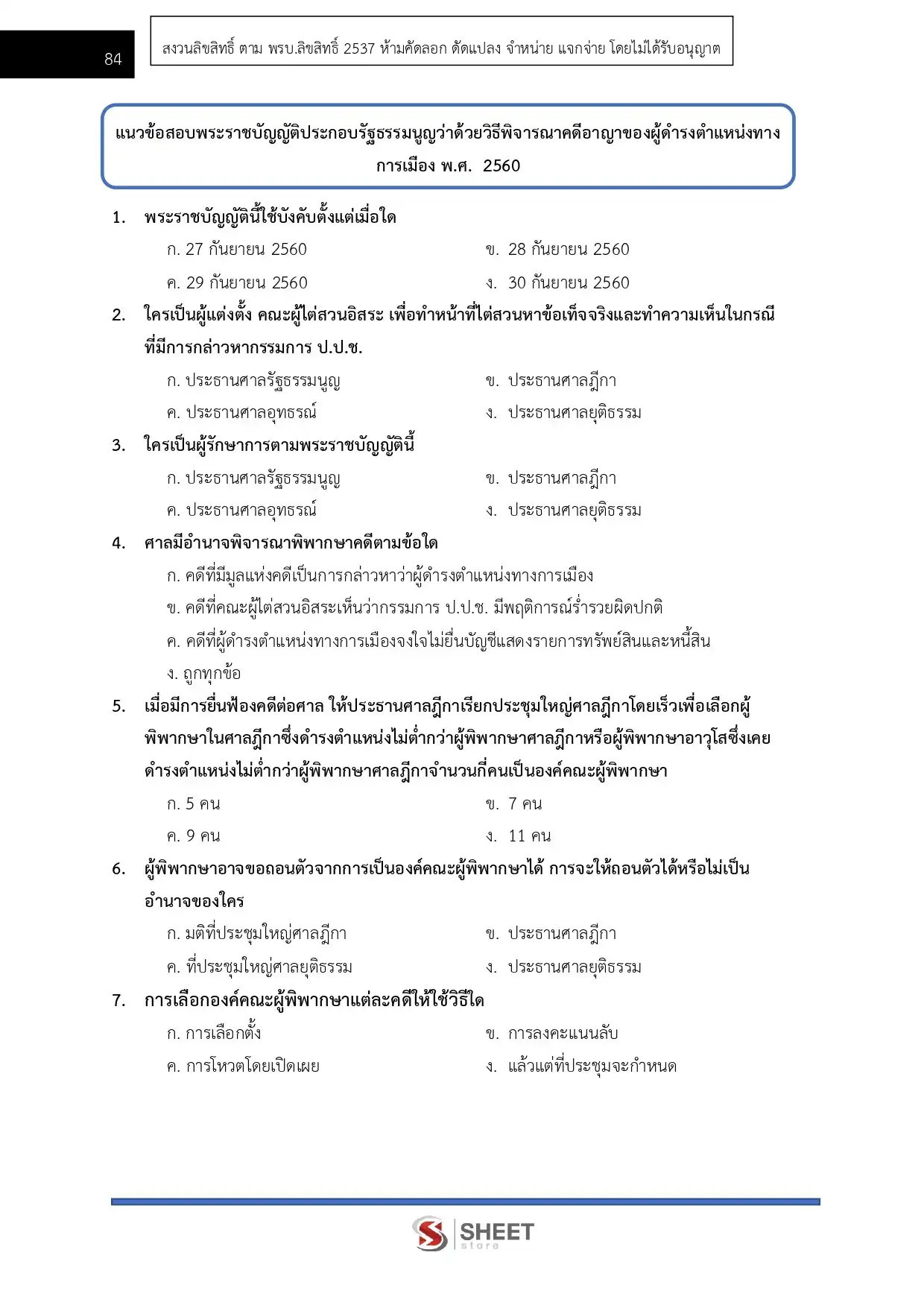– แนวข้อสอบพระราชบัญญัติประกอบรัฐธรรมนูญ ว่าด้วยวิธีพิจารณาคดีอาญาของผู้ดำรงตำแหน่งทางการเมือง พ.ศ. 2560