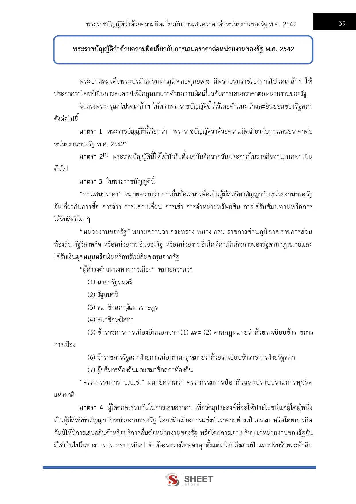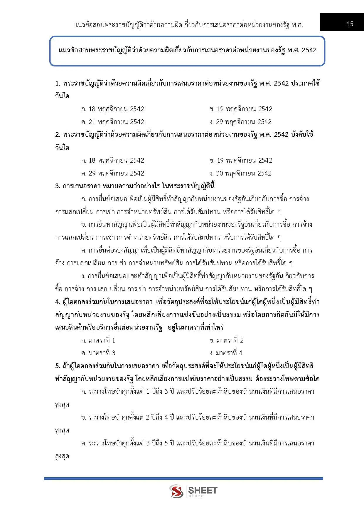 – แนวข้อสอบพระราชบัญญัติว่าด้วยความผิดเกี่ยวกับการเสนอราคาต่อหน่วยงานของรัฐ พ.ศ. 2542