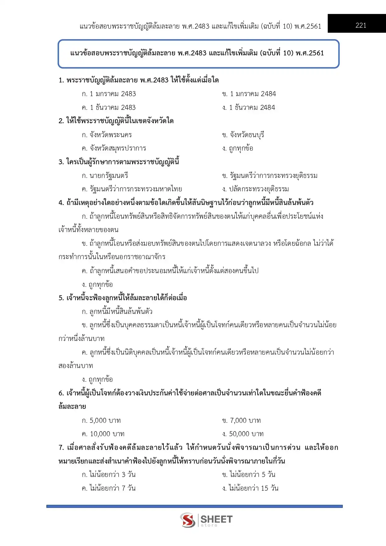 – แนวข้อสอบพระราชบัญญัติล้มละลาย พ.ศ. 2483 และแก้ไขเพิ่มเติม (ฉบับที่ 10) พ.ศ. 2561