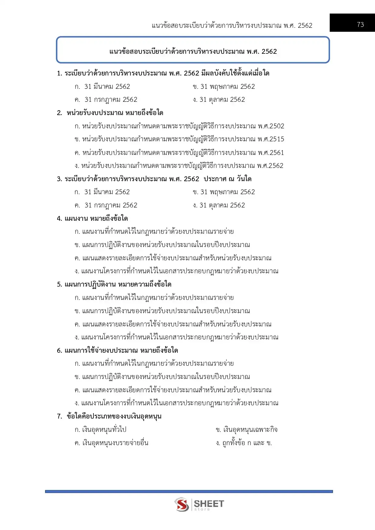 – แนวข้อสอบระเบียบว่าด้วยการบริหารงบประมาณ พ.ศ. 2562