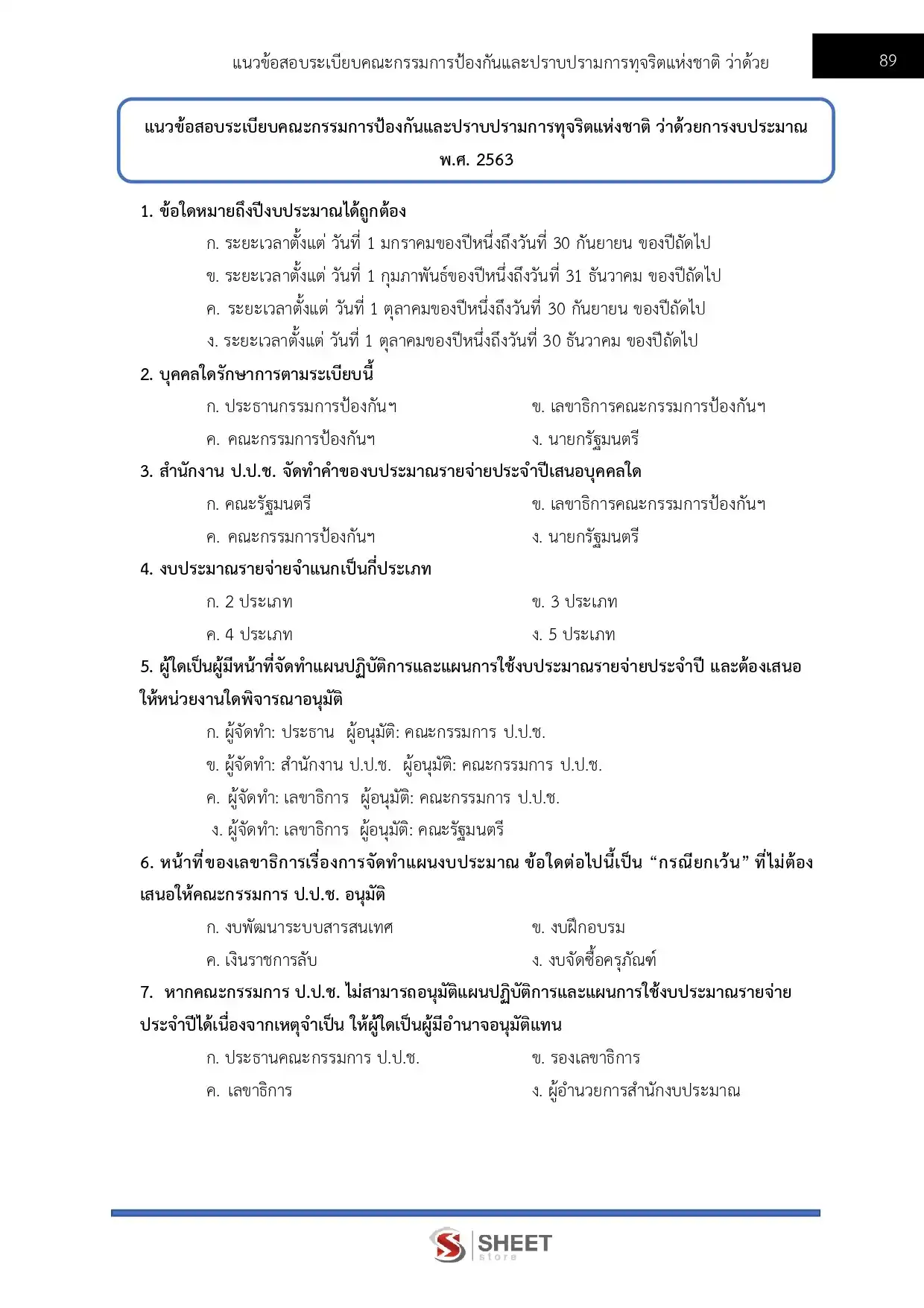 – แนวข้อสอบระเบียบคณะกรรมการป้องกันและปราบปรามการทุจริตแห่งชาติว่าด้วยการงบประมาณ พ.ศ. 2563