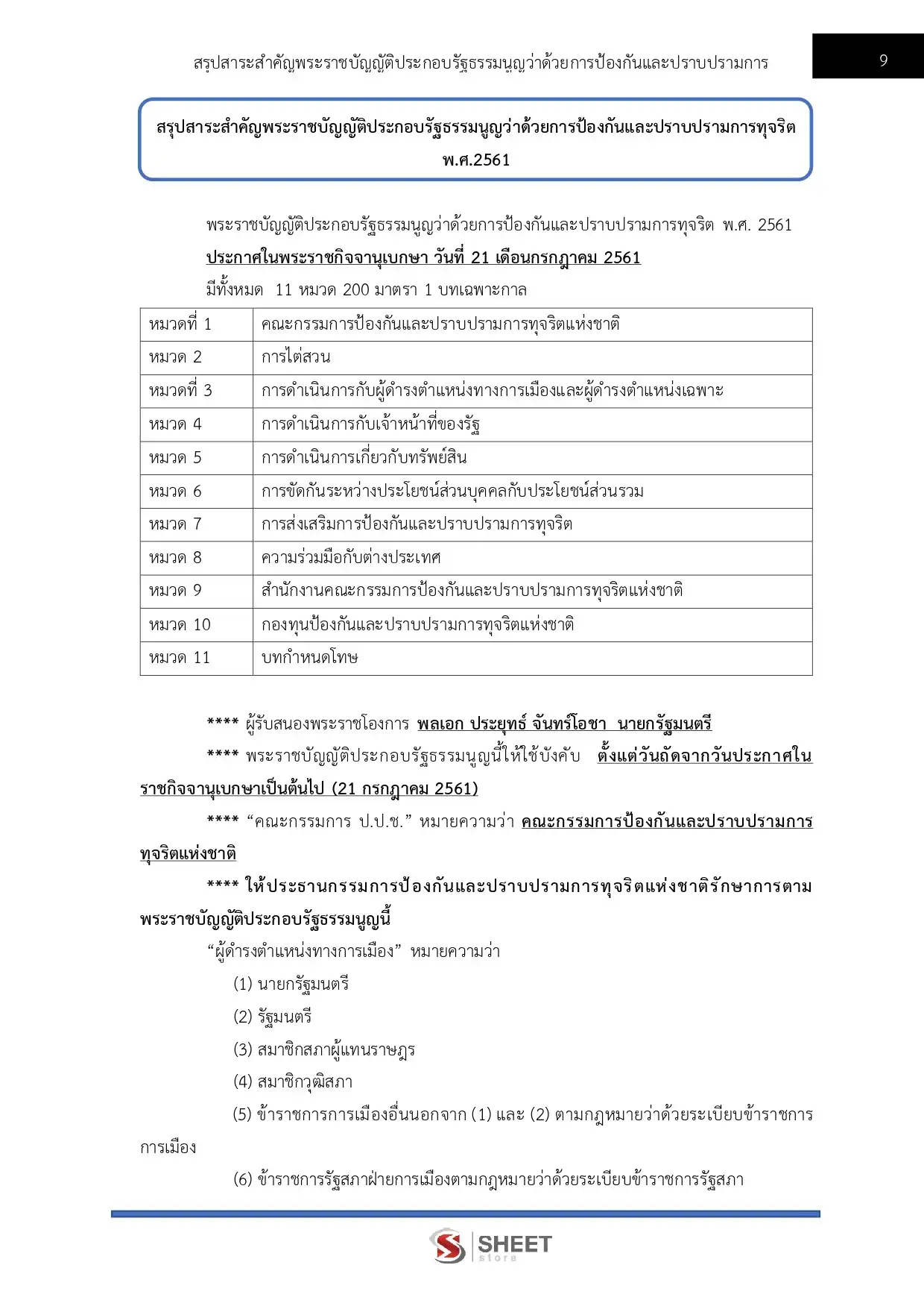 – สรุปสาระสำคัญพระราชบัญญัติประกอบรัฐธรรมนูญว่าด้วยการป้องกันและปราบปรามการทุจริต พ.ศ. 2561