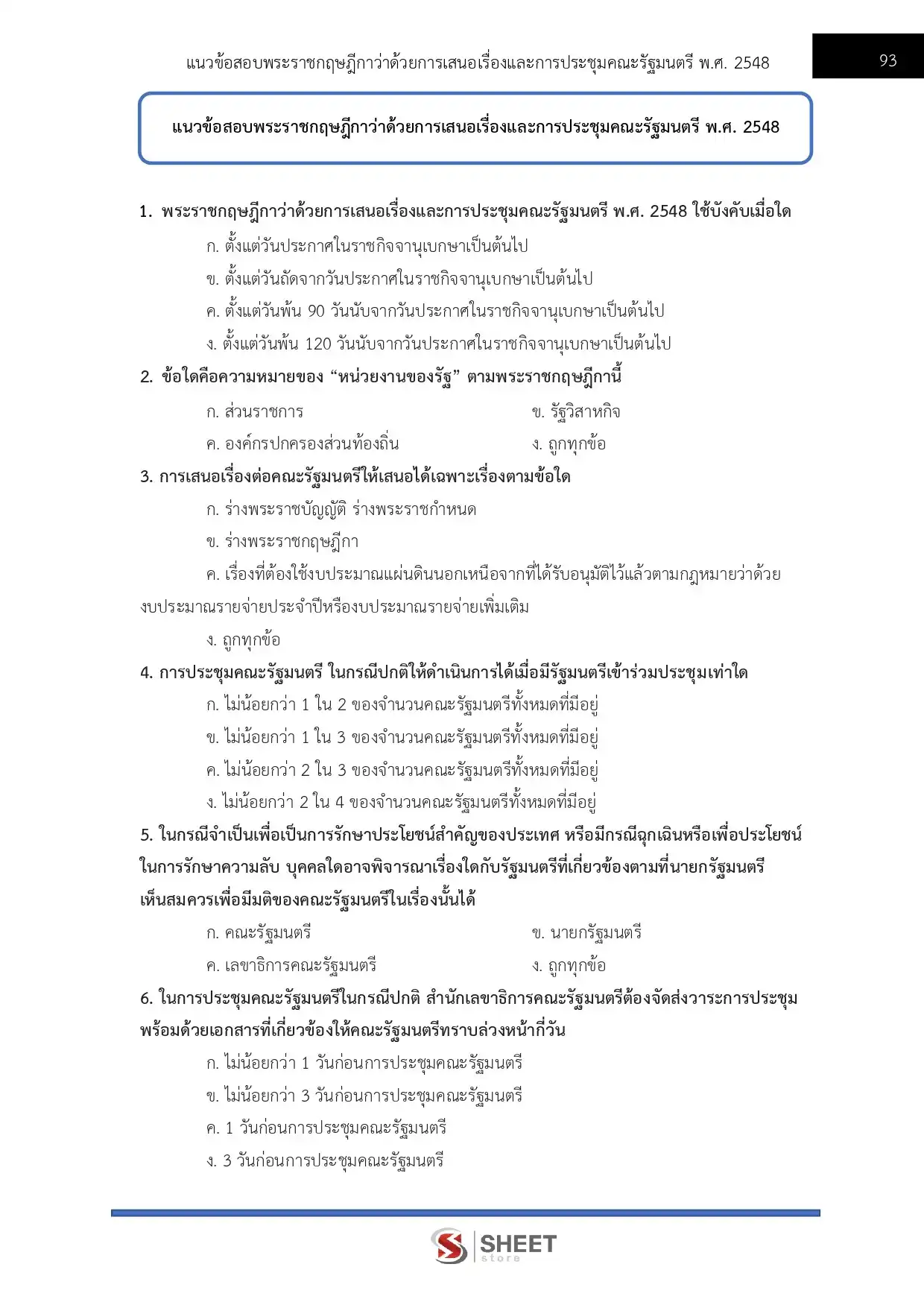 – แนวข้อสอบพระราชกฤษฎีกาว่าด้วยการเสนอเรื่องและการประชุมคณะรัฐมนตรี พ.ศ. 2548