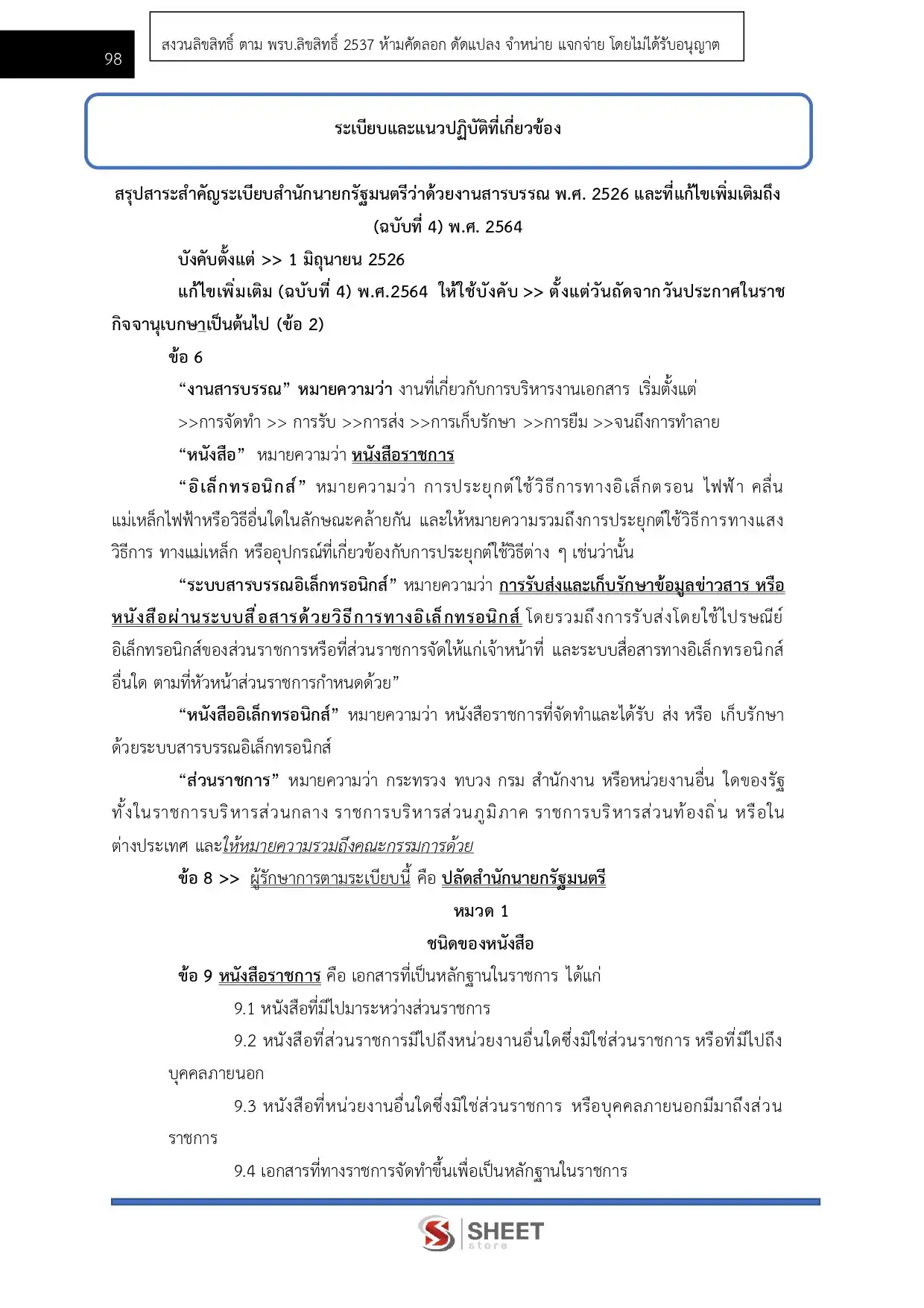 – แนวข้อสอบสรุปสาระสำคัญพระราชกฤษฎีกาว่าด้วยหลักเกณฑ์และวิธีการบริหารกิจการบ้านเมืองที่ดี พ.ศ. 2546 และที่แก้ไขเพิ่มเติมถึง (ฉบับที่ 2) พ.ศ. 2562