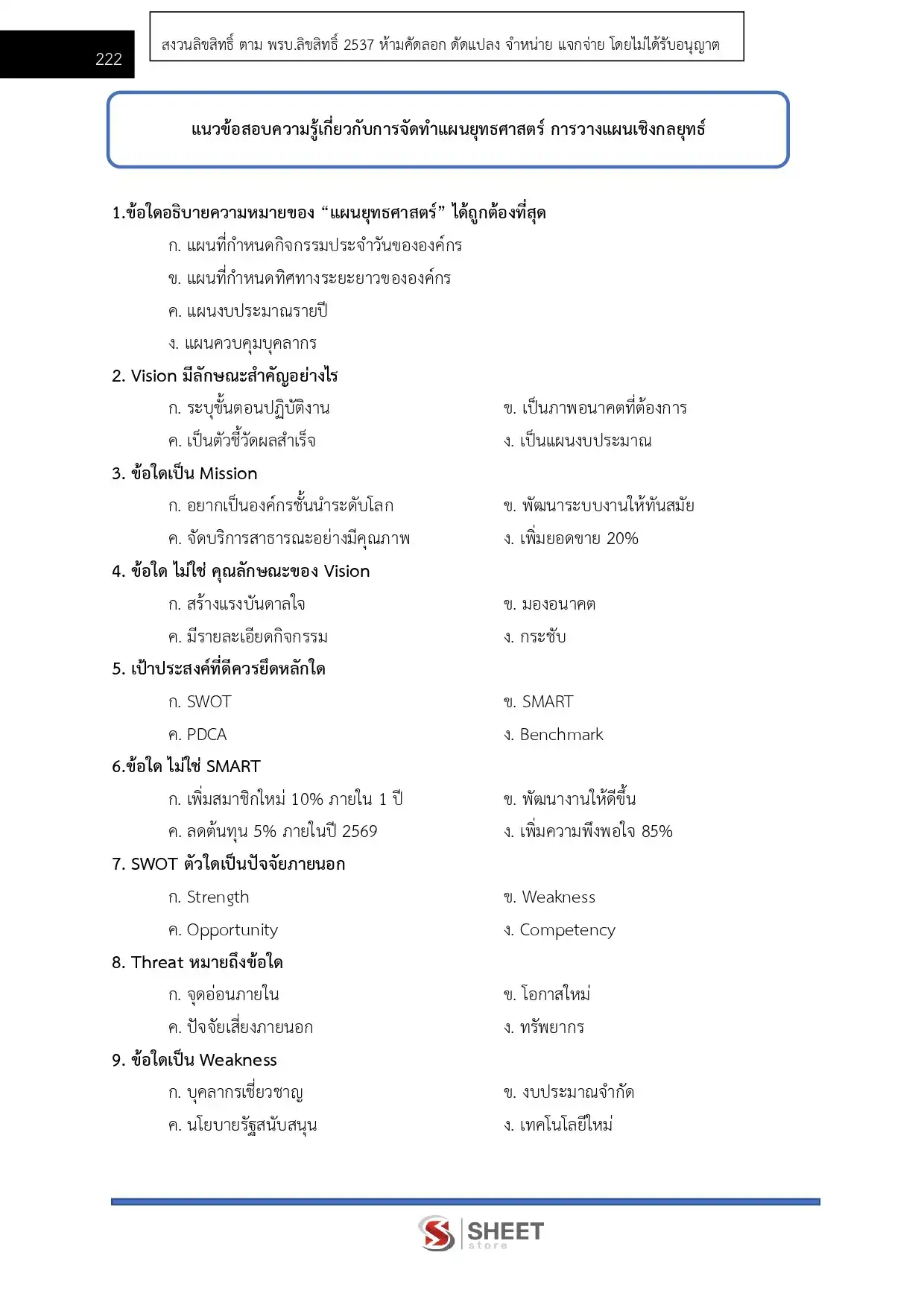 – แนวข้อสอบความรู้เกี่ยวกับการจัดทำแผนยุทธศาสตร์ การวางแผนเชิงกลยุทธ์
