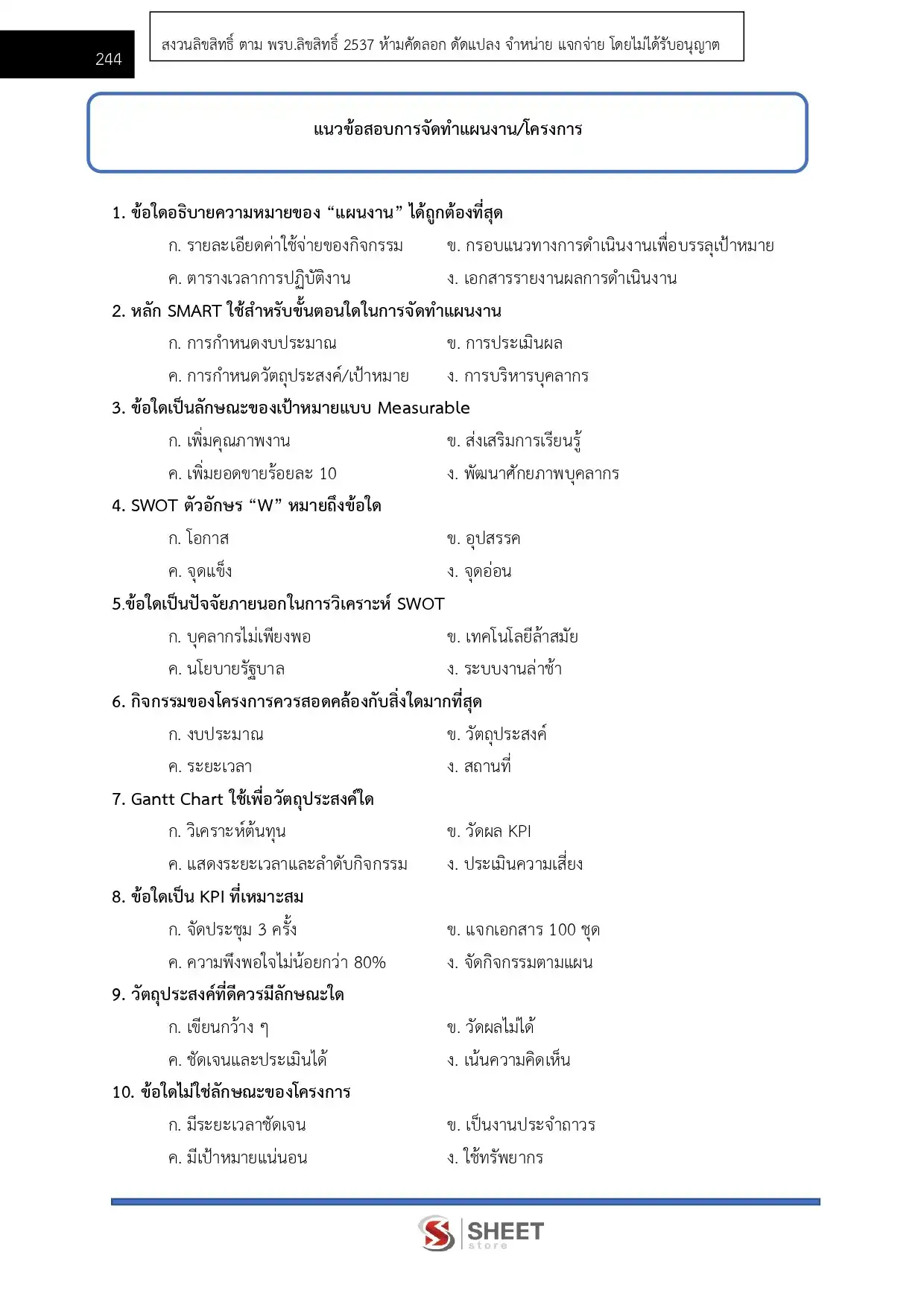 – แนวข้อสอบการจัดทำแผนงาน/โครงการ