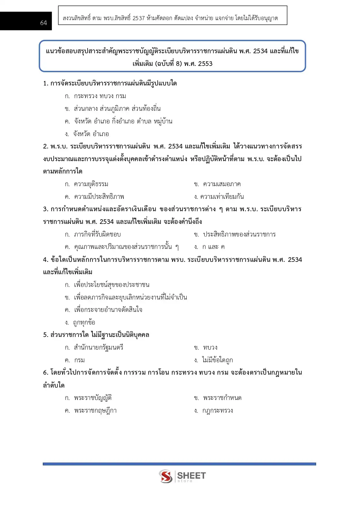 – แนวข้อสอบ พระราชกฤษฎีกาว่าด้วยหลักเกณฑ์ และวิธีการบริหารบ้านเมืองที่ดี พ.ศ. 2546 และที่แก้ไขเพิ่มเติมถึง (ฉบับที่ 2) พ.ศ. 2562
