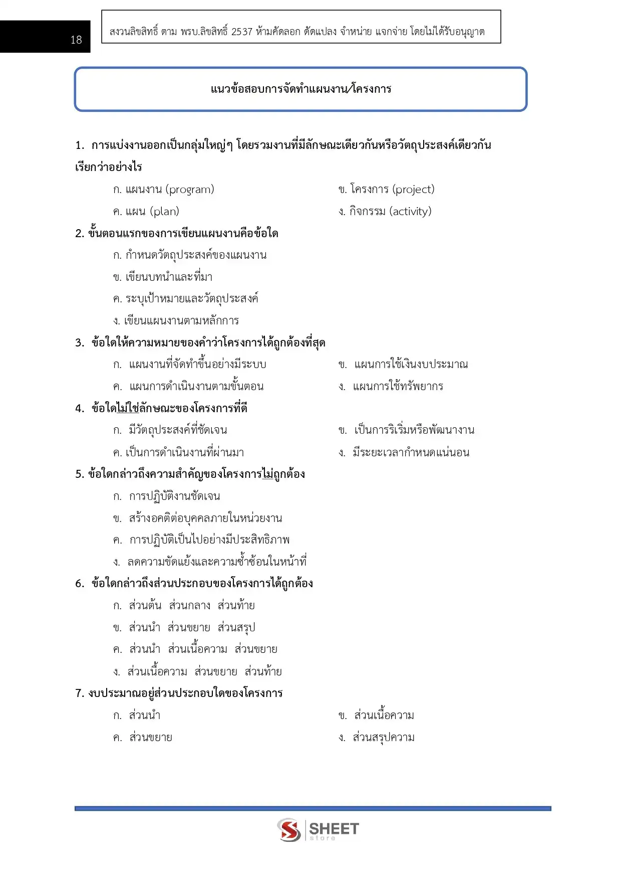 – แนวข้อสอบ การจัดทำแผนงาน/โครงการ