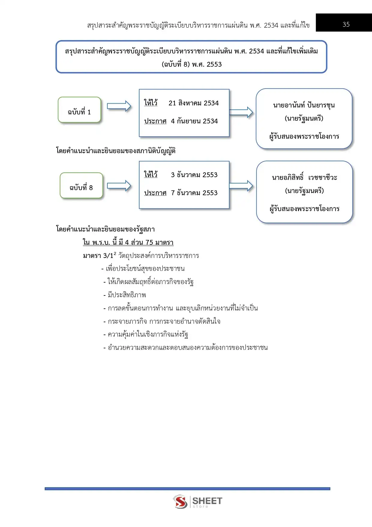 – สรุปสาระสำคัญพระราชบัญญัติระเบียบบริหารราชการแผ่นดิน พ.ศ. 2534 และที่แก้ไขเพิ่มเติม (ฉบับที่ 8) พ.ศ. 2553