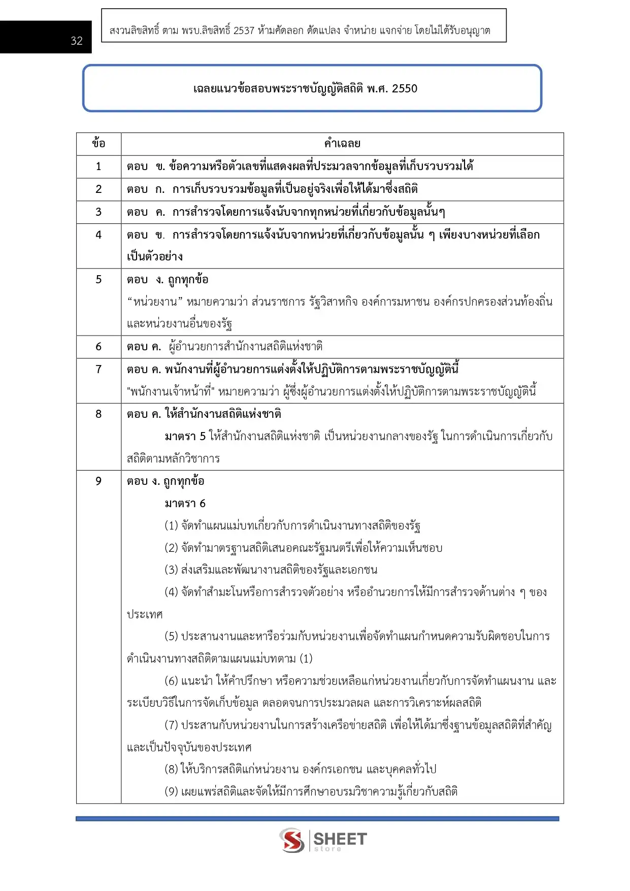 – แนวข้อสอบพระราชบัญญัติสถิติ พ.ศ. 2550