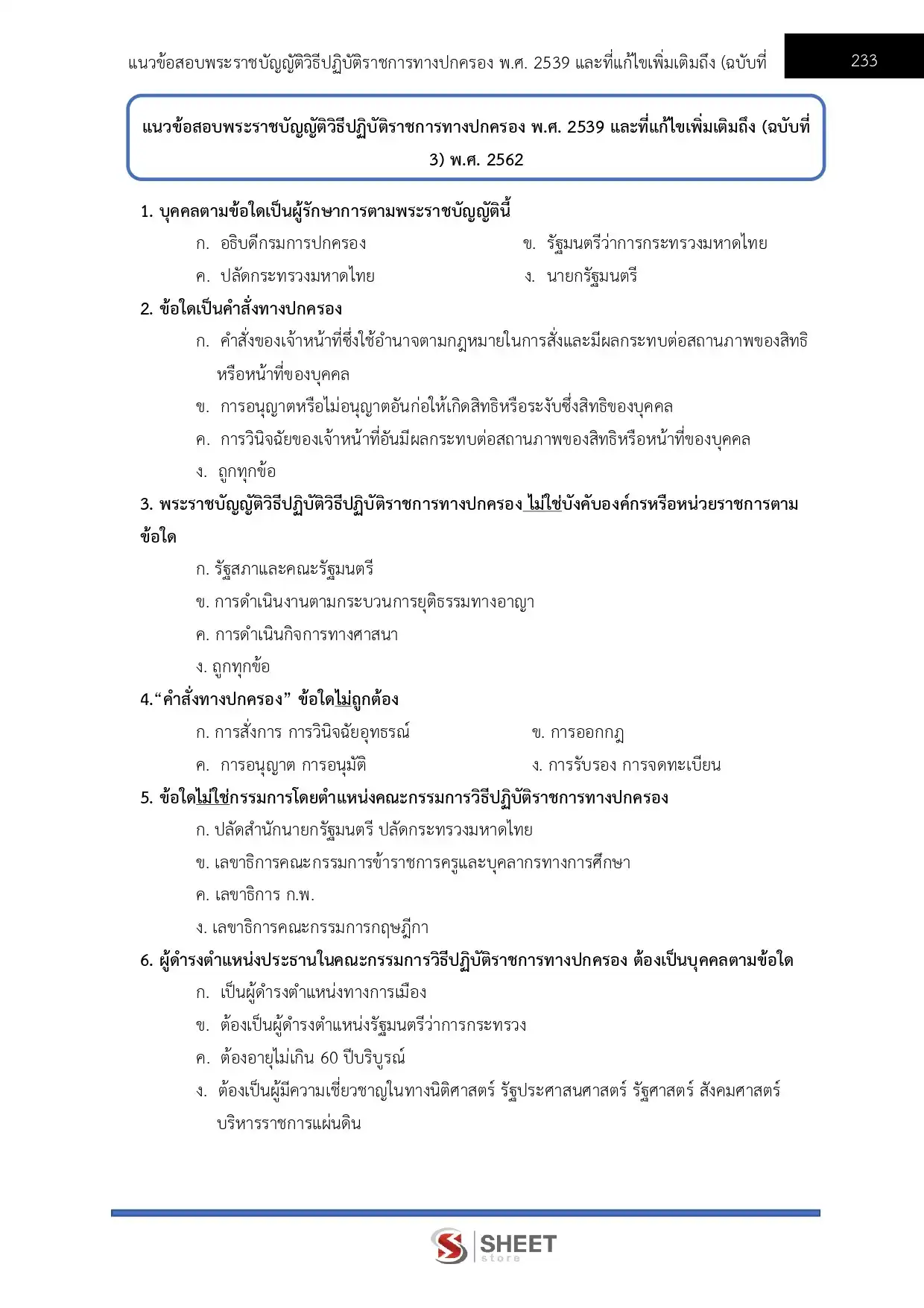 – แนวข้อสอบสรุปสาระสำคัญพระราชกฤษฎีกาว่าด้วยหลักเกณฑ์และวิธีการบริหารกิจการบ้านเมืองที่ดี พ.ศ. 2546 และที่แก้ไขเพิ่มเติมถึง (ฉบับที่ 2) พ.ศ. 2562