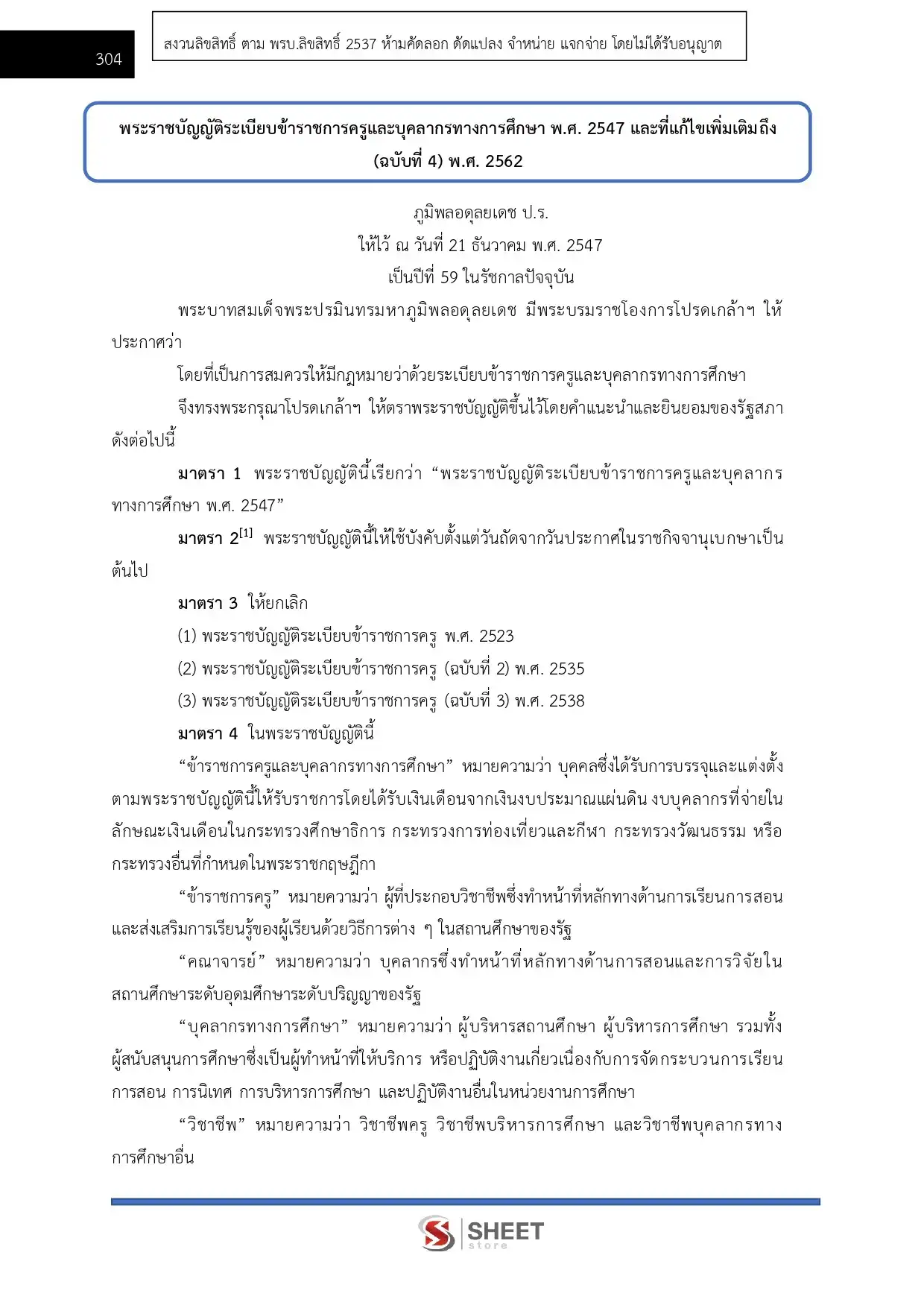 – แนวข้อสอบพระราชบัญญัติระเบียบข้าราชการครูและบุคลากรทางการศึกษา พ.ศ. 2547 และที่แก้ไขเพิ่มเติมถึง (ฉบับที่ 4) พ.ศ. 2562