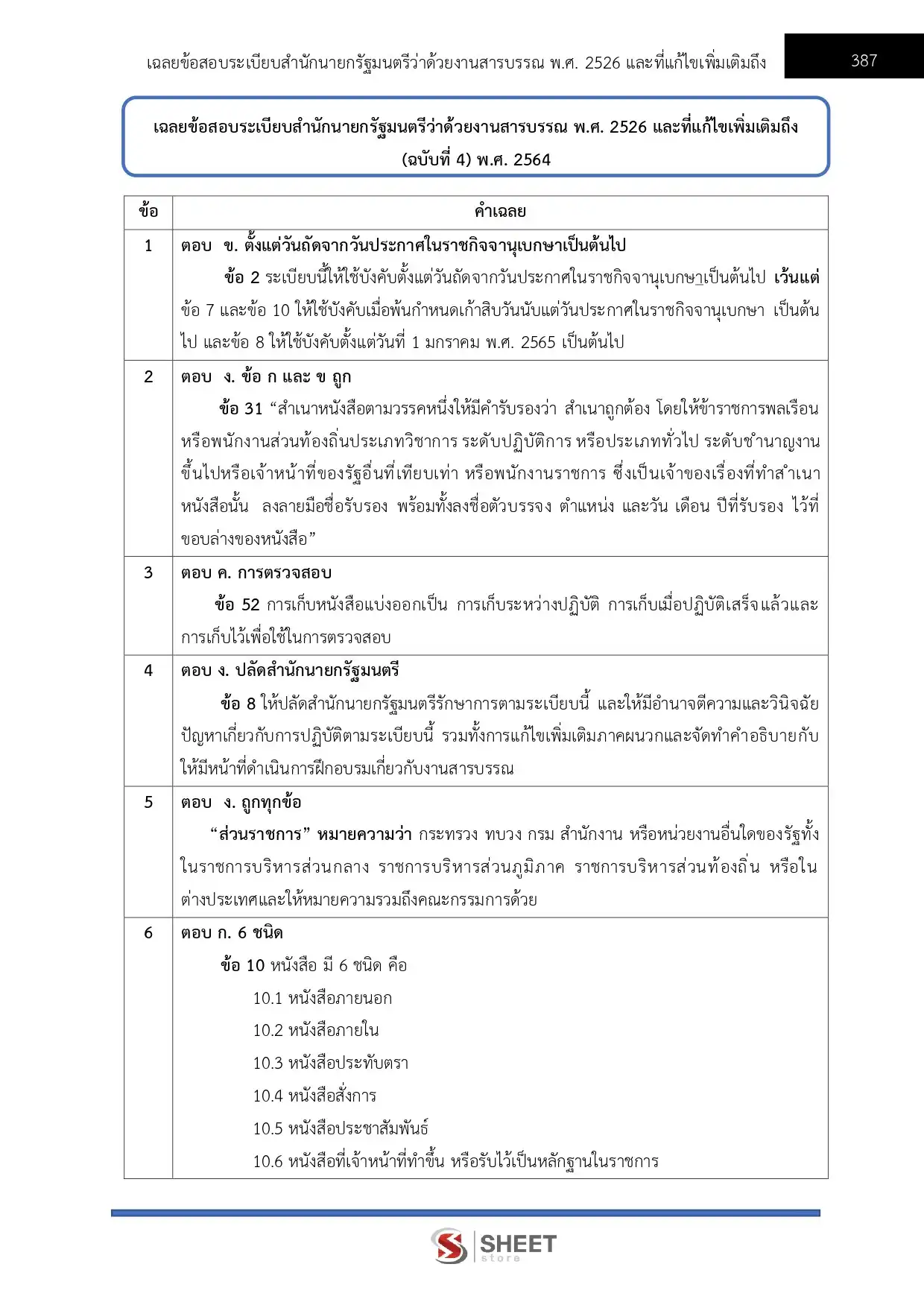 – แนวข้อสอบสรุปสาระสำคัญระเบียบสำนักนายกรัฐมนตรีว่าด้วยงานสารบรรณ พ.ศ. 2526 และที่แก้ไขเพิ่มเติมถึง (ฉบับที่ 4) พ.ศ. 2564