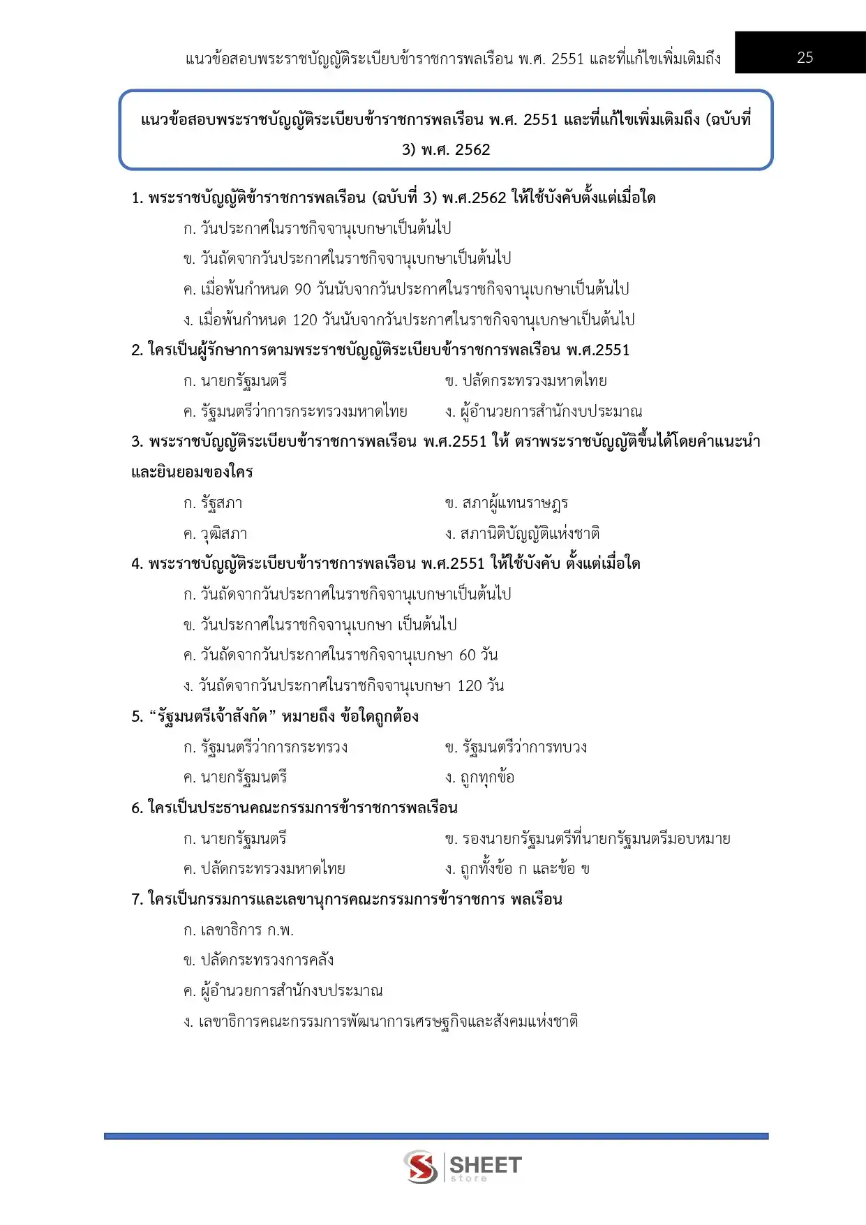 – แนวข้อสอบพระราชบัญญัติระเบียบข้าราชการพลเรือน พ.ศ. 2551 และที่แก้ไขเพิ่มเติมถึง (ฉบับที่ 3) พ.ศ. 2562