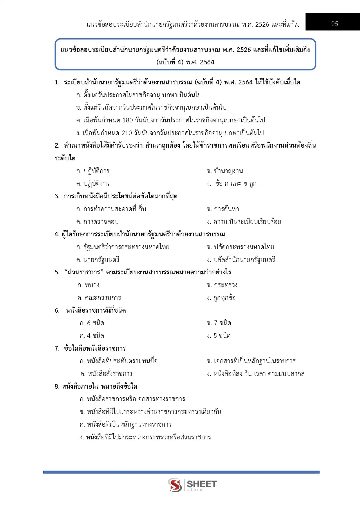 – แนวข้อสอบสรุปสาระสำคัญระเบียบสำนักนายกรัฐมนตรีว่าด้วยงานสารบรรณ พ.ศ. 2526 และที่แก้ไขเพิ่มเติมถึง (ฉบับที่ 4) พ.ศ. 2564