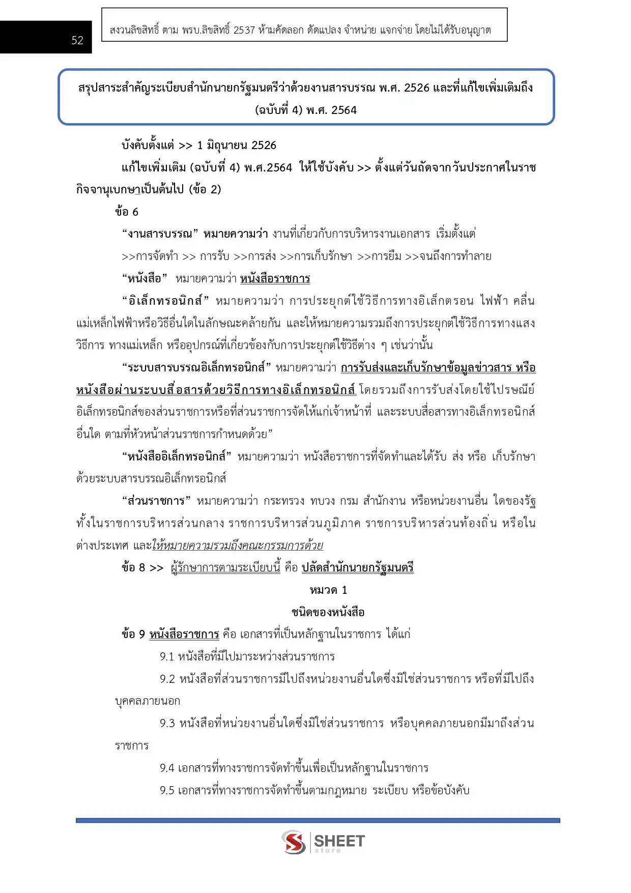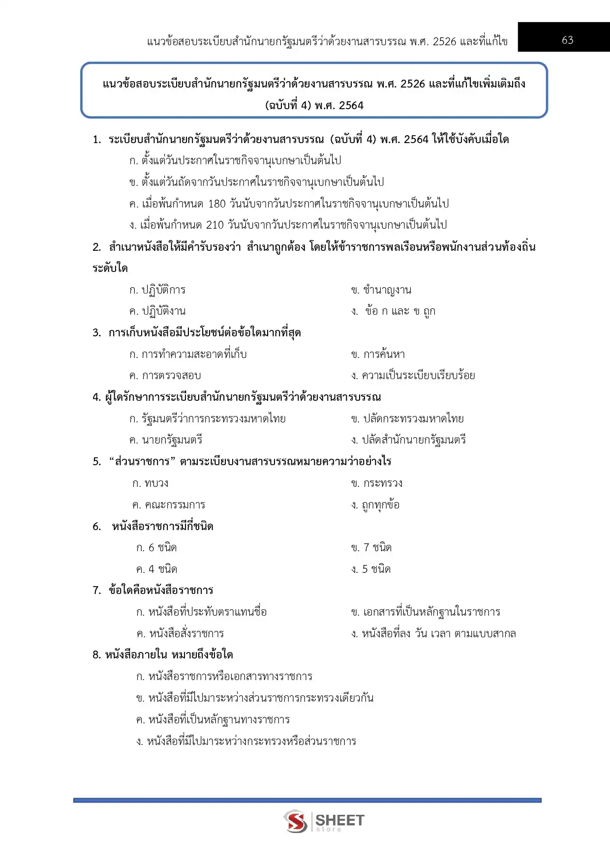 – แนวข้อสอบระเบียบสำนักนายกรัฐมนตรีว่าด้วยงานสารบรรณ พ.ศ. 2526 และที่แก้ไขเพิ่มเติมถึง (ฉบับที่ 4) พ.ศ. 2564