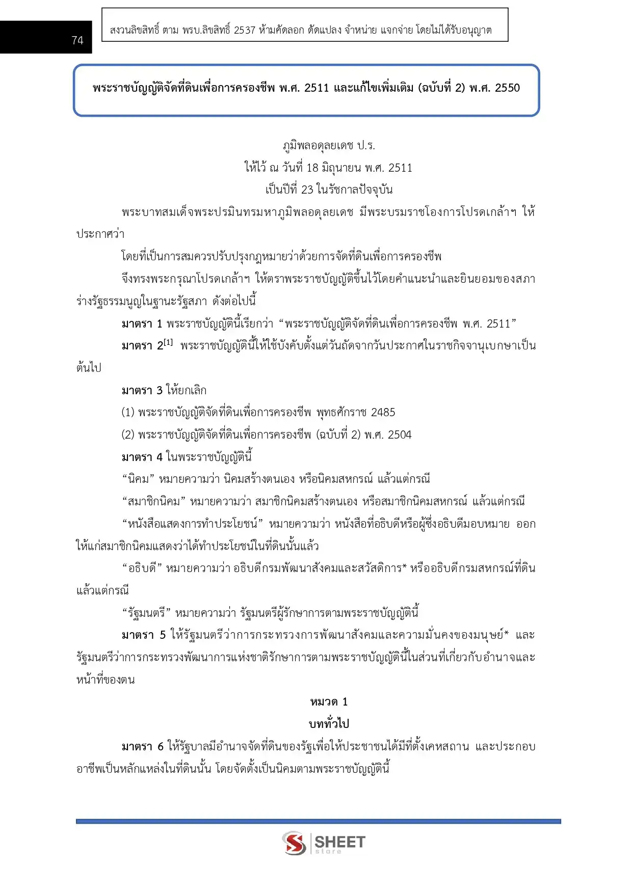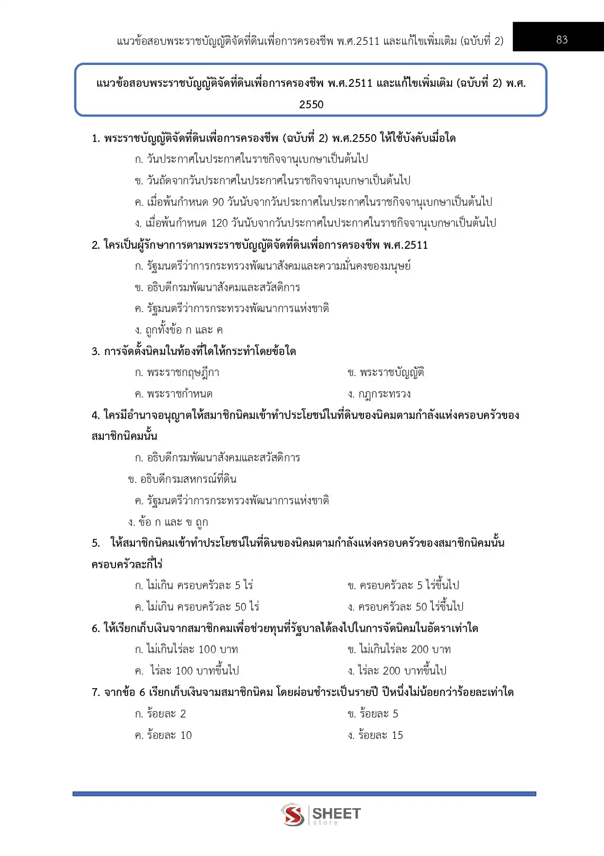 – แนวข้อสอบพระราชบัญญัติจัดที่ดินเพื่อการครองชีพ พ.ศ. 2511 และแก้ไขเพิ่มเติม (ฉบับที่ 2 ) พ.ศ. 2550