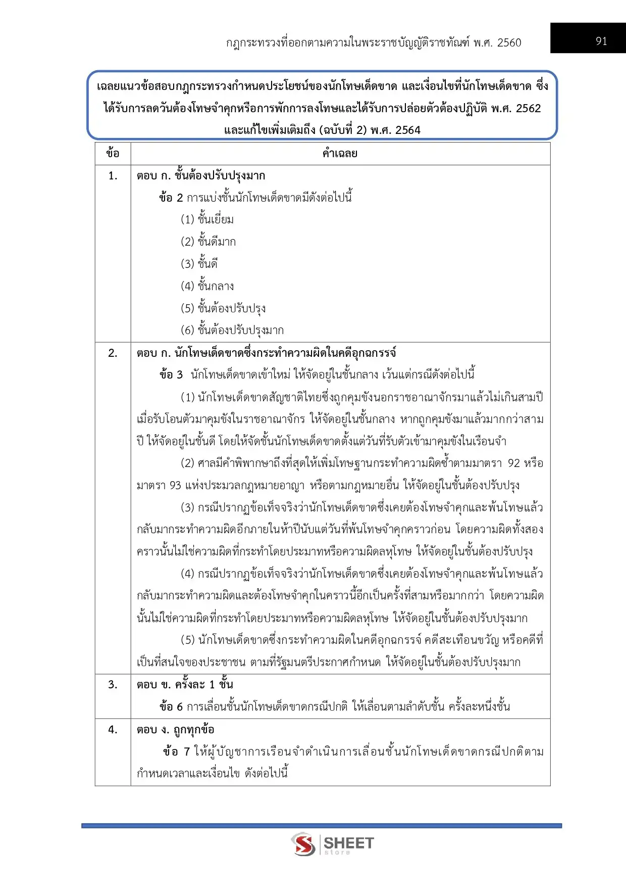 – แนวข้อสอบกฎกระทรวงที่ออกตามความในพระราชบัญญัติราชทัณฑ์ พ.ศ. 2560